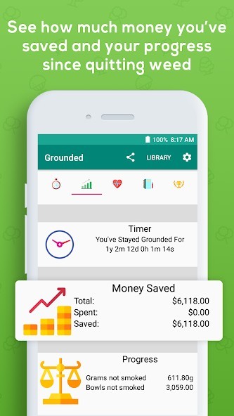 - Unlike most weed journal and bad habbit quitting apps, here you can also watch your money grow because of how much you’ve saved from quitting cannabis.